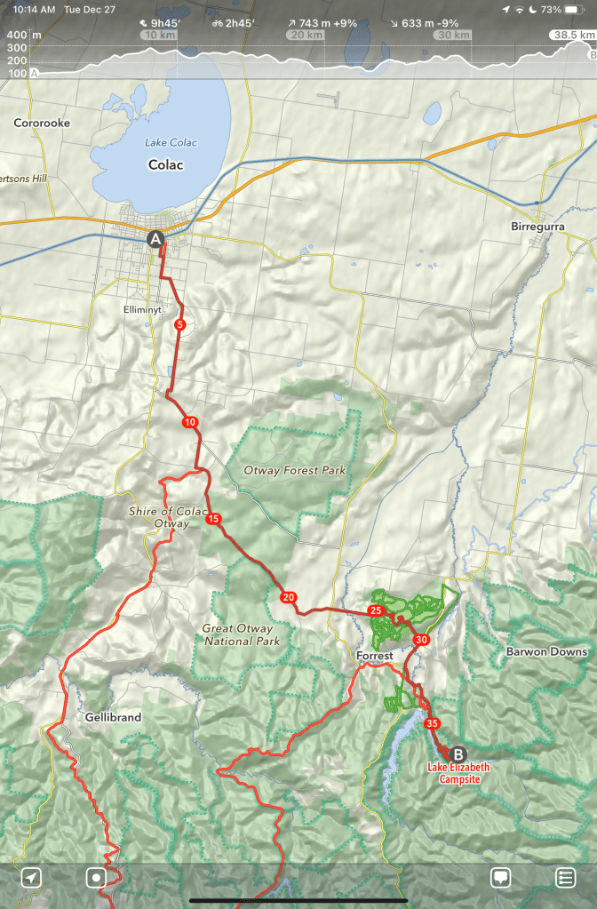 The route out of from Beech Forest is the Old Beechy Rail Trail (~45km 3.5h).